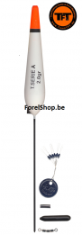 De Tremarella Glas -Veer ketting is een complete montage van 6 speciale glaasjes en 5 microveertjes die op 0.22 mm nylon lijn zijn bevestigd. Aan beide einden zijn een rubber stopper bevestigd en een 2-weg wartel.
